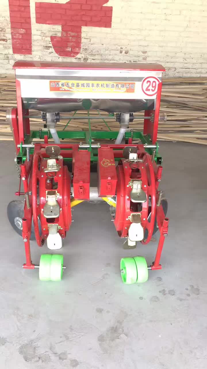 “城園豐”牌2MBF-1/2型玉米鋪膜施肥精量播種機是按照華北地區(qū)高寒冷涼山區(qū)覆膜玉米栽培農(nóng)藝要求精心改進設(shè)計,主要針對美國引進的先玉335玉米種子需單粒播種的特點,與12-25馬力四輪拖拉機配套使用,可一次性完成刮土整形、溝施底肥、鋪膜、壓膜覆土、膜上打孔、精量點播、穴式或條式覆土等多項復(fù)式作業(yè),具有結(jié)構(gòu)簡單,操作維護方便等特點,其優(yōu)點是:一機多用(播玉米可以通過增減鴨咀,達到高密、中密互換;‚換谷子排種器可以精量播種谷子。)與穴式覆土(覆土少,采光面大,提高地溫快;‚不易聚水,不易板結(jié),不用放苗,省工又省時。)可實現(xiàn)單粒精量播種,不傷籽種,節(jié)種省工、節(jié)本增產(chǎn),深受廣大農(nóng)民的歡迎。