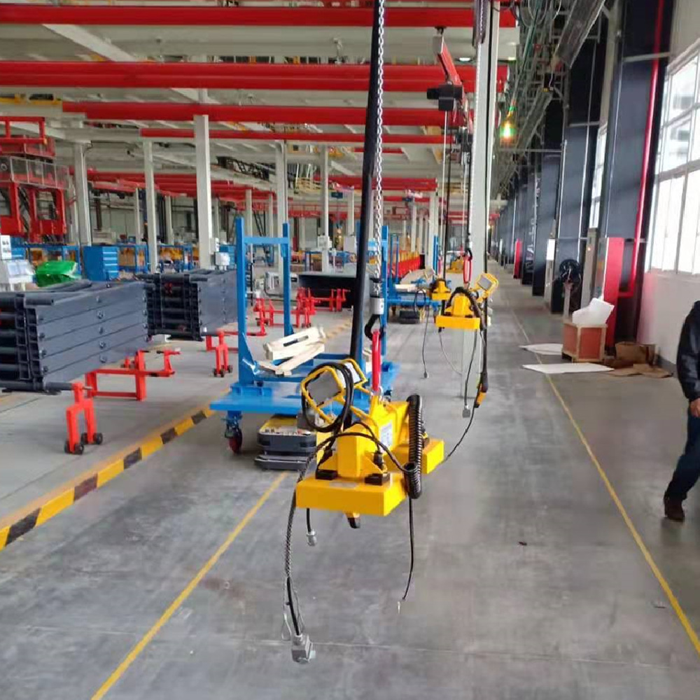 KBK起重吊具是最常用得物料搬運(yùn)工具,被廣泛用于汽車、機(jī)械、醫(yī)療、化工等行業(yè),操作簡(jiǎn)單,性能優(yōu)良,為人們的生產(chǎn)與生活提供便捷??梢匀我獯钆淦渌ぞ呤褂茫鐨鈩?dòng)葫蘆、氣動(dòng)平衡器等,搭配使用大大的提高工作效率,幫助工人快速完成移動(dòng)搬運(yùn)工作。湖南千豪磁電電永磁鐵安裝在kbk起重吊具,應(yīng)用在工廠工作量大,任務(wù)重的流水線工作上,大大減輕工人的勞動(dòng)量,助工人快速完成工作,加大產(chǎn)品生產(chǎn)量。